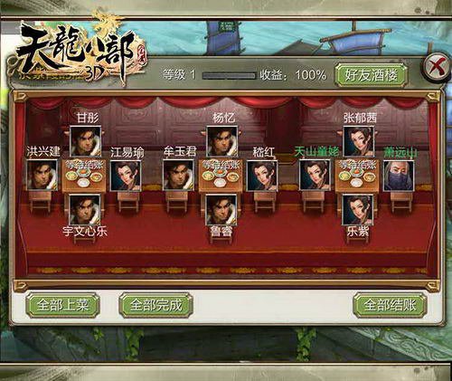 酒樓體系也能夠看到這些神秘俠客的當地,看見他們圍在一桌談笑自若,會不會覺的他們都「留燈」是極好的?俠客體系能很直接的提高玩家的戰力,而且能夠把多余的俠客「傳功」給裝備中的俠客,使俠客發生的戰力更高。