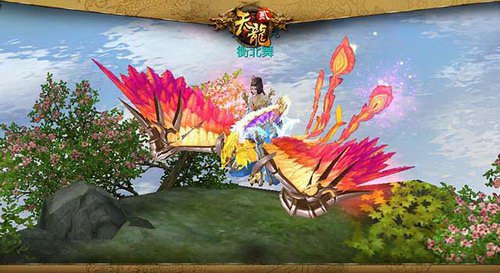 左传里曾说过:良禽择木而栖,贤臣择主而事,而全新《天龙八部3D》的凤凰坐骑【栖霞彩凤】踏的可不是树木,并且天边艳丽的彩霞!相比【天龙】的霸气【栖霞彩凤】多了柔美艳丽。