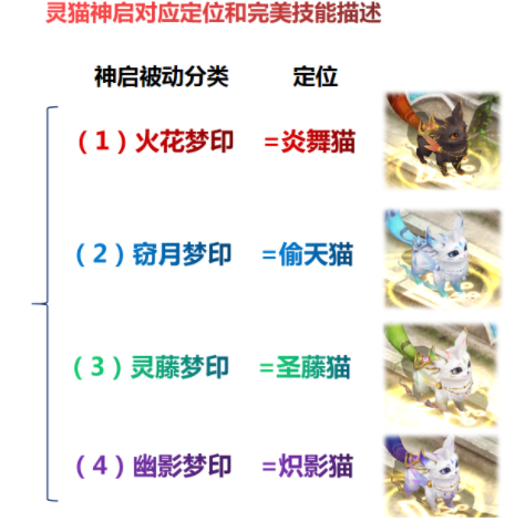 熾影貓、期望對妳有所協助,靈貓的定位是什麽?合適什麽玩家養成?具體的種類如何判別?絢夢靈貓·緋緋歸於年獸,歸於珍惜寵,最多可出征或合體2個。 基礎特點遠超同類對比幻獸(小老虎、小狗、小諸葛)根據靈貓帶有的神啟被迫技術,可進行區分種類,為了方便了解,鳳凰主張可了解為炎舞貓、偷天貓。 聖藤貓咱們知道神啟技術的加成,通常是四種方向,也便是炎舞系、偷天系、熾影系、聖藤系備註:五虎中的趙雲是勇義神義神啟(比較全方位的被迫狀況加成)。 作為主寶寶,是五虎年獸的特別騎士,這兒不作對比闡明對於玩家來說,出征2個帶不同神啟技術的幻獸,再在騎士判決和看護騎士錄用別的2個神啟技術的幻獸。 理論上便是神啟技術的最大化錄用,也便是同壹時刻咱們能夠享用4種不同神啟被迫的狀況加成。舉例:假定咱們帶著關羽(炎舞系)和張飛(聖藤系)幻獸。 咱們能夠不用拿這兩個寶寶錄用判決或看護騎士能夠再安排2個神啟幻獸去錄用,例如咱們沒有其他的五虎寶寶,把下面的帶有竊月夢印的偷天貓和幽影夢印的熾影貓。 組成上去錄用騎士,即可享用這四個系列的神啟被迫哦!所以靈貓也是能夠協助咱們補到缺失的神啟騎士綜上所述,靈貓對於玩家而言,需求是比較顯著的。 比較合適以下玩家:想早期過渡寶寶又能夠在新年獸傳承的,能夠考慮養成:短少部分神啟被迫的玩家,能夠補到位,完成神啟被迫的最大化,然後提高進犯實力。